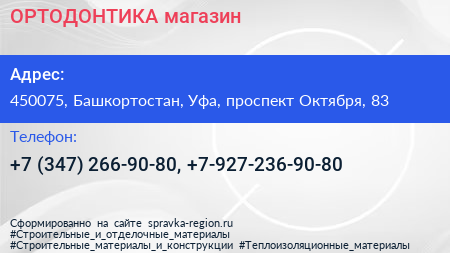 ОРТОДОНТИКА, магазин по адресу 450075, Башкортостан, Уфа, проспект Октября, 83 в дальнейшем Организация, размещена в следующих категориях: