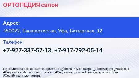 ОРТОПЕДИЯ, салон по адресу 450092, Башкортостан, Уфа, Батырская, 12 в дальнейшем Организация, размещена в следующих категориях: