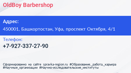 OldBoy Barbershop по адресу 450001, Башкортостан, Уфа, проспект Октября, 4/1 в дальнейшем Организация, размещена в следующих категориях: