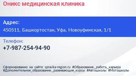 Оникс, медицинская клиника по адресу 450511, Башкортостан, Уфа, Новоуфимская, 1/1 в дальнейшем Организация, размещена в следующих категориях:
