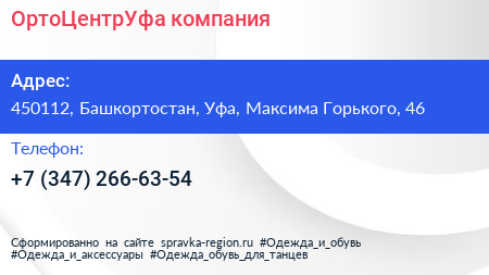 ОртоЦентрУфа, компания по адресу 450112, Башкортостан, Уфа, Максима Горького, 46 в дальнейшем Организация, размещена в следующих категориях: