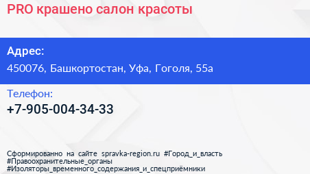 PRO.крашено, салон красоты по адресу 450076, Башкортостан, Уфа, Гоголя, 55а в дальнейшем Организация, размещена в следующих категориях: