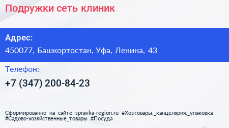 Подружки, сеть клиник по адресу 450077, Башкортостан, Уфа, Ленина, 43 в дальнейшем Организация, размещена в следующих категориях: