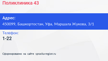 Поликлиника №43 по адресу 450099, Башкортостан, Уфа, Маршала Жукова, 3/1 в дальнейшем Организация, размещена в следующих категориях: