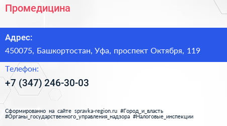 Промедицина по адресу 450075, Башкортостан, Уфа, проспект Октября, 119 в дальнейшем Организация, размещена в следующих категориях: