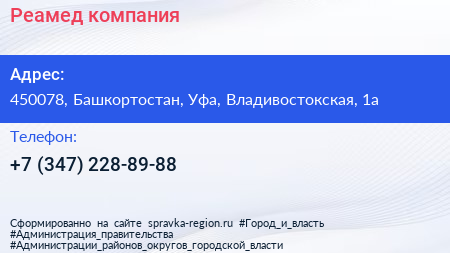 Реамед, компания по адресу 450078, Башкортостан, Уфа, Владивостокская, 1а в дальнейшем Организация, размещена в следующих категориях: