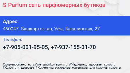 S Parfum, сеть парфюмерных бутиков по адресу 450047, Башкортостан, Уфа, Бакалинская, 27 в дальнейшем Организация, размещена в следующих категориях: