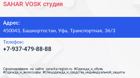 SAHAR & VOSK, студия по адресу 450043, Башкортостан, Уфа, Транспортная, 36/3 в дальнейшем Организация, размещена в следующих категориях: