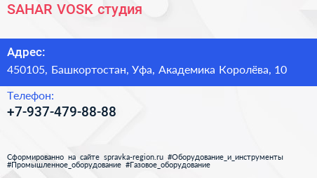 SAHAR & VOSK, студия по адресу 450105, Башкортостан, Уфа, Академика Королёва, 10 в дальнейшем Организация, размещена в следующих категориях: