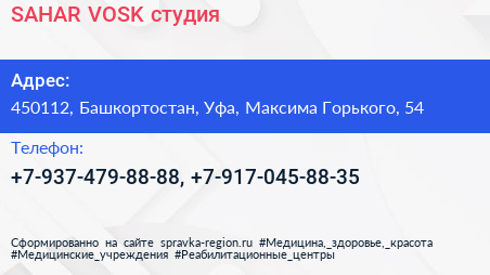 SAHAR & VOSK, студия по адресу 450112, Башкортостан, Уфа, Максима Горького, 54 в дальнейшем Организация, размещена в следующих категориях: