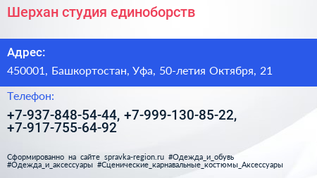 Шерхан, студия единоборств по адресу 450001, Башкортостан, Уфа, 50-летия Октября, 21 в дальнейшем Организация, размещена в следующих категориях: