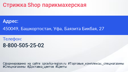 Стрижка Shop, парикмахерская по адресу 450049, Башкортостан, Уфа, Баязита Бикбая, 27 в дальнейшем Организация, размещена в следующих категориях: