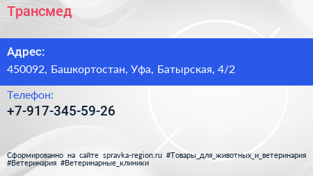 Трансмед по адресу 450092, Башкортостан, Уфа, Батырская, 4/2 в дальнейшем Организация, размещена в следующих категориях: