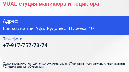 VUAL, студия маникюра и педикюра по адресу Башкортостан, Уфа, Рудольфа Нуреева, 10 в дальнейшем Организация, размещена в следующих категориях: