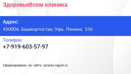 #ЗдоровьяВсем, клиника по адресу 450006, Башкортостан, Уфа, Ленина, 156 в дальнейшем Организация, размещена в следующих категориях: