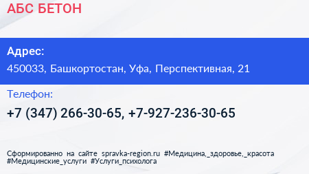 АБС БЕТОН по адресу 450033, Башкортостан, Уфа, Перспективная, 21 в дальнейшем Организация, размещена в следующих категориях: