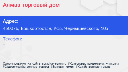 Алмаз, торговый дом по адресу 450076, Башкортостан, Уфа, Чернышевского, 10а в дальнейшем Организация, размещена в следующих категориях: