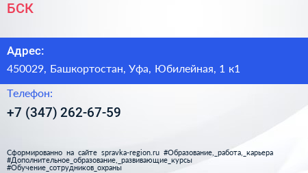 БСК по адресу 450029, Башкортостан, Уфа, Юбилейная, 1 к1 в дальнейшем Организация, размещена в следующих категориях: