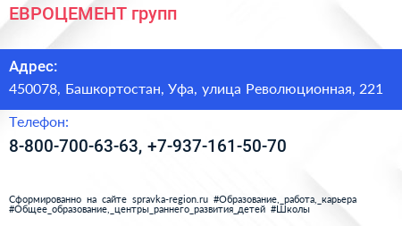 ЕВРОЦЕМЕНТ групп по адресу 450078, Башкортостан, Уфа, улица Революционная, 221 в дальнейшем Организация, размещена в следующих категориях: