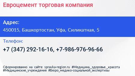 Евроцемент, торговая компания по адресу 450015, Башкортостан, Уфа, Силикатная, 5 в дальнейшем Организация, размещена в следующих категориях: