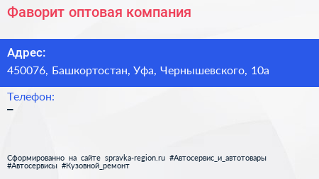 Фаворит, оптовая компания по адресу 450076, Башкортостан, Уфа, Чернышевского, 10а в дальнейшем Организация, размещена в следующих категориях: