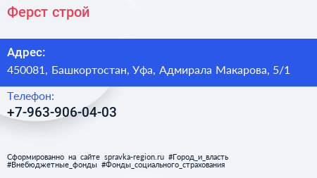 Ферст строй по адресу 450081, Башкортостан, Уфа, Адмирала Макарова, 5/1 в дальнейшем Организация, размещена в следующих категориях:
