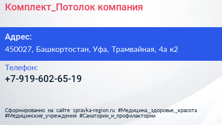 Комплект_Потолок, компания по адресу 450027, Башкортостан, Уфа, Трамвайная, 4а к2 в дальнейшем Организация, размещена в следующих категориях: