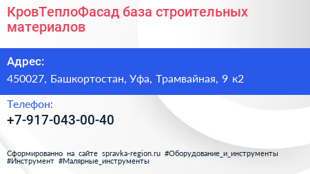 КровТеплоФасад, база строительных материалов по адресу 450027, Башкортостан, Уфа, Трамвайная, 9 к2 в дальнейшем Организация, размещена в следующих категориях: