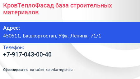 КровТеплоФасад, база строительных материалов по адресу 450511, Башкортостан, Уфа, Ленина, 71/1 в дальнейшем Организация, размещена в следующих категориях: