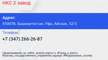 НКС №2, завод по адресу 450078, Башкортостан, Уфа, Айская, 52/1 в дальнейшем Организация, размещена в следующих категориях: