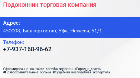 Подоконник, торговая компания по адресу 450003, Башкортостан, Уфа, Нехаева, 51/1 в дальнейшем Организация, размещена в следующих категориях: