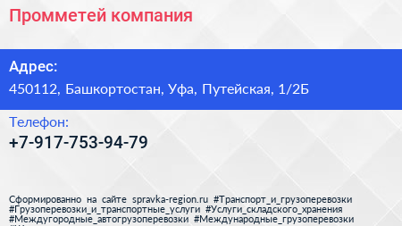 Промметей, компания по адресу 450112, Башкортостан, Уфа, Путейская, 1/2Б в дальнейшем Организация, размещена в следующих категориях: