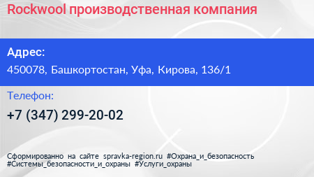 Rockwool, производственная компания по адресу 450078, Башкортостан, Уфа, Кирова, 136/1 в дальнейшем Организация, размещена в следующих категориях: