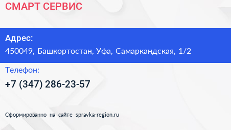 СМАРТ СЕРВИС по адресу 450049, Башкортостан, Уфа, Самаркандская, 1/2 в дальнейшем Организация, размещена в следующих категориях:
