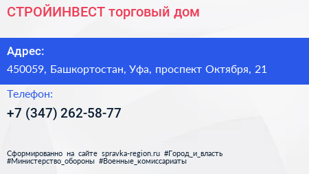 СТРОЙИНВЕСТ, торговый дом по адресу 450059, Башкортостан, Уфа, проспект Октября, 21 в дальнейшем Организация, размещена в следующих категориях: