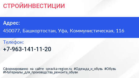 СТРОЙИНВЕСТИЦИИ по адресу 450077, Башкортостан, Уфа, Коммунистическая, 116 в дальнейшем Организация, размещена в следующих категориях: