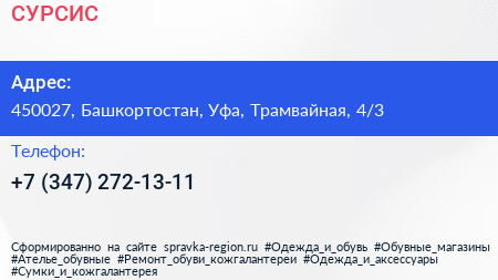 СУРСИС по адресу 450027, Башкортостан, Уфа, Трамвайная, 4/3 в дальнейшем Организация, размещена в следующих категориях: