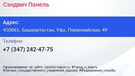 Сэндвич Панель по адресу 450061, Башкортостан, Уфа, Первомайская, 49 в дальнейшем Организация, размещена в следующих категориях: