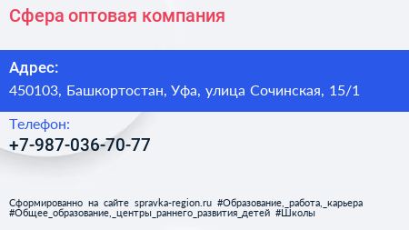 Сфера, оптовая компания по адресу 450103, Башкортостан, Уфа, улица Сочинская, 15/1 в дальнейшем Организация, размещена в следующих категориях: