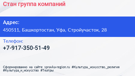 Стан, группа компаний по адресу 450511, Башкортостан, Уфа, Стройучасток, 28 в дальнейшем Организация, размещена в следующих категориях: