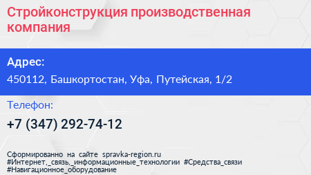 Стройконструкция, производственная компания по адресу 450112, Башкортостан, Уфа, Путейская, 1/2 в дальнейшем Организация, размещена в следующих категориях: