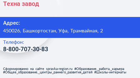 Техна, завод по адресу 450026, Башкортостан, Уфа, Трамвайная, 2 в дальнейшем Организация, размещена в следующих категориях: