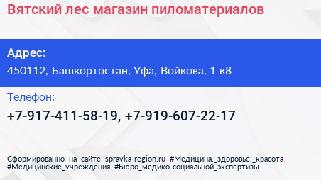 Вятский лес, магазин пиломатериалов по адресу 450112, Башкортостан, Уфа, Войкова, 1 к8 в дальнейшем Организация, размещена в следующих категориях: