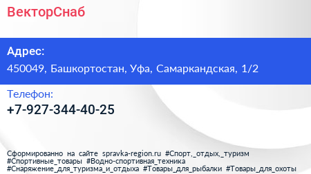 ВекторСнаб по адресу 450049, Башкортостан, Уфа, Самаркандская, 1/2 в дальнейшем Организация, размещена в следующих категориях: