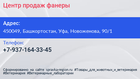 Центр продаж фанеры по адресу 450049, Башкортостан, Уфа, Новоженова, 90/1 в дальнейшем Организация, размещена в следующих категориях: