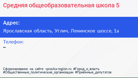 Средняя общеобразовательная школа №5 по адресу Ярославская область, Углич, Ленинское шоссе, 1а в дальнейшем Организация, размещена в следующих категориях: