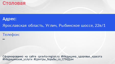 Столовая по адресу Ярославская область, Углич, Рыбинское шоссе, 22в/1 в дальнейшем Организация, размещена в следующих категориях: