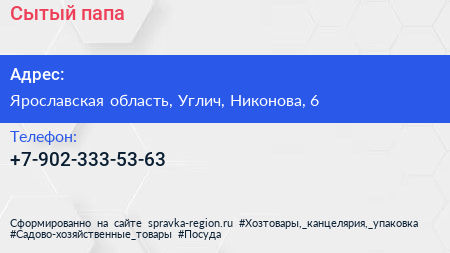 Сытый папа по адресу Ярославская область, Углич, Никонова, 6 в дальнейшем Организация, размещена в следующих категориях: