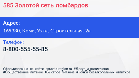 585*Золотой, сеть ломбардов по адресу 169330, Коми, Ухта, Строительная, 2а в дальнейшем Организация, размещена в следующих категориях: