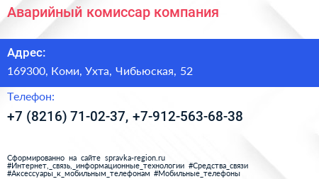 Аварийный комиссар, компания по адресу 169300, Коми, Ухта, Чибьюская, 52 в дальнейшем Организация, размещена в следующих категориях: